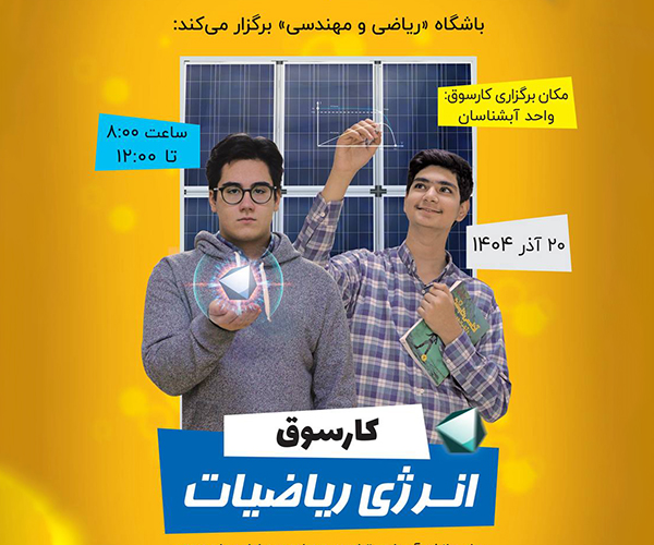 سومین رویداد باشگاه «ریاضی و مهندسی» علامهایها در سال تحصیلی ۱۴۰۵-۱۴۰۴ با عنوان کارسوق «انرژی ریاضیات» روز پنجشنبه ۲۰ آذرماه برگزار میشود.