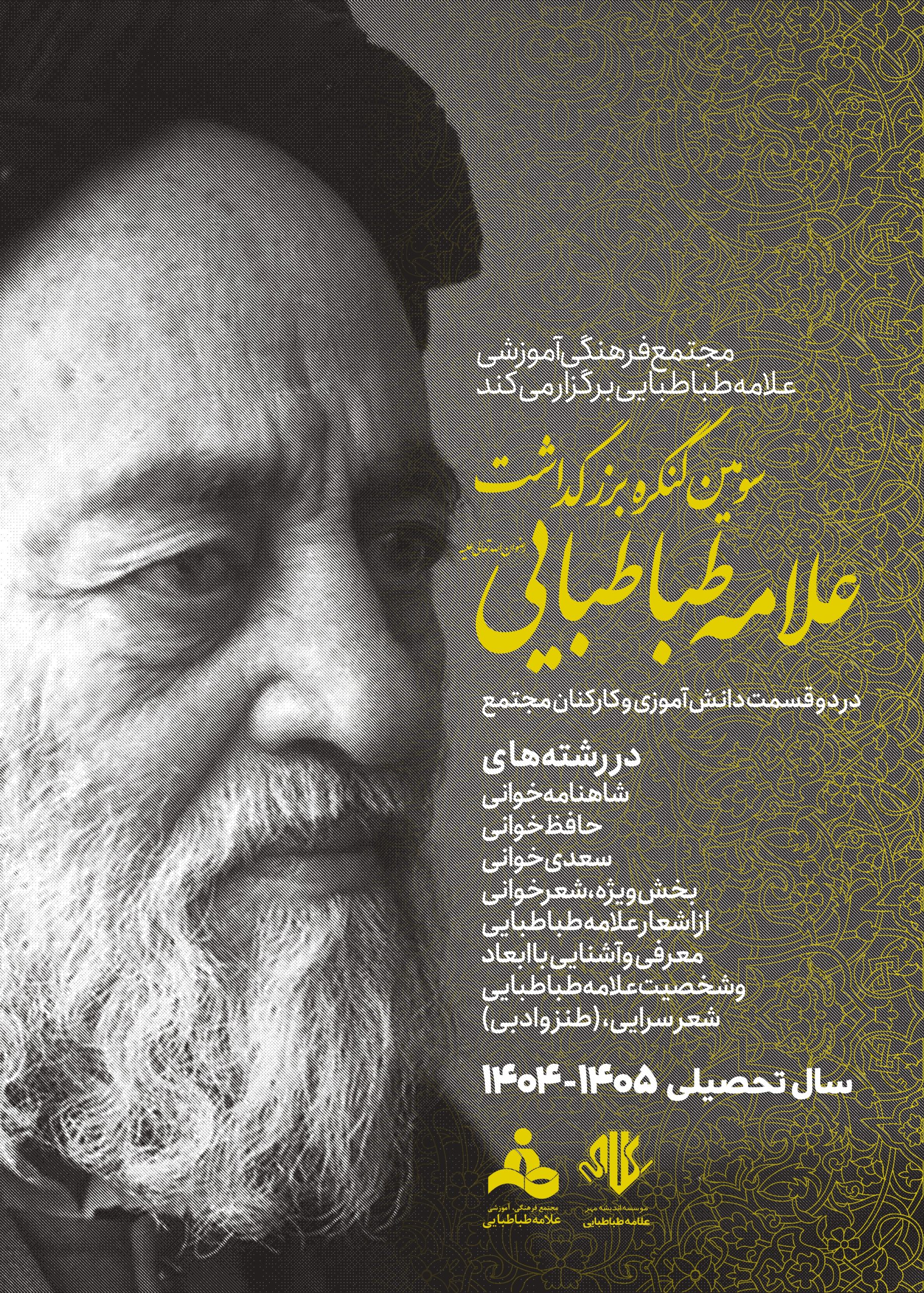 ثبت نام در سومین دورۀ بزرگداشت علامه سید محمد حسین طباطبایی از ۲۳ مهرماه آغاز می شود. مرحله اول همایش از ۸ تا ۱۵ آبان ماه در سطح مدرسه برگزار می شود و آثار برتر تا ۲۰ آبان ماه به مجتمع ارسال خواهد شد. ۲۰ تا ۲۳ آبان ماه زمان داوری آثار ارسالی در سطح مجتمع است و ۲۴ آبان نامزدهای نهایی در هر بخش معرفی خواهند شد. معرفی نفرات برتر و اهدای جوایز در اختتامیه همایش بزرگداشت علامه سید محمد حسین طباطبایی انجام می شود که پاییز امسال برگزار خواهد شد.
