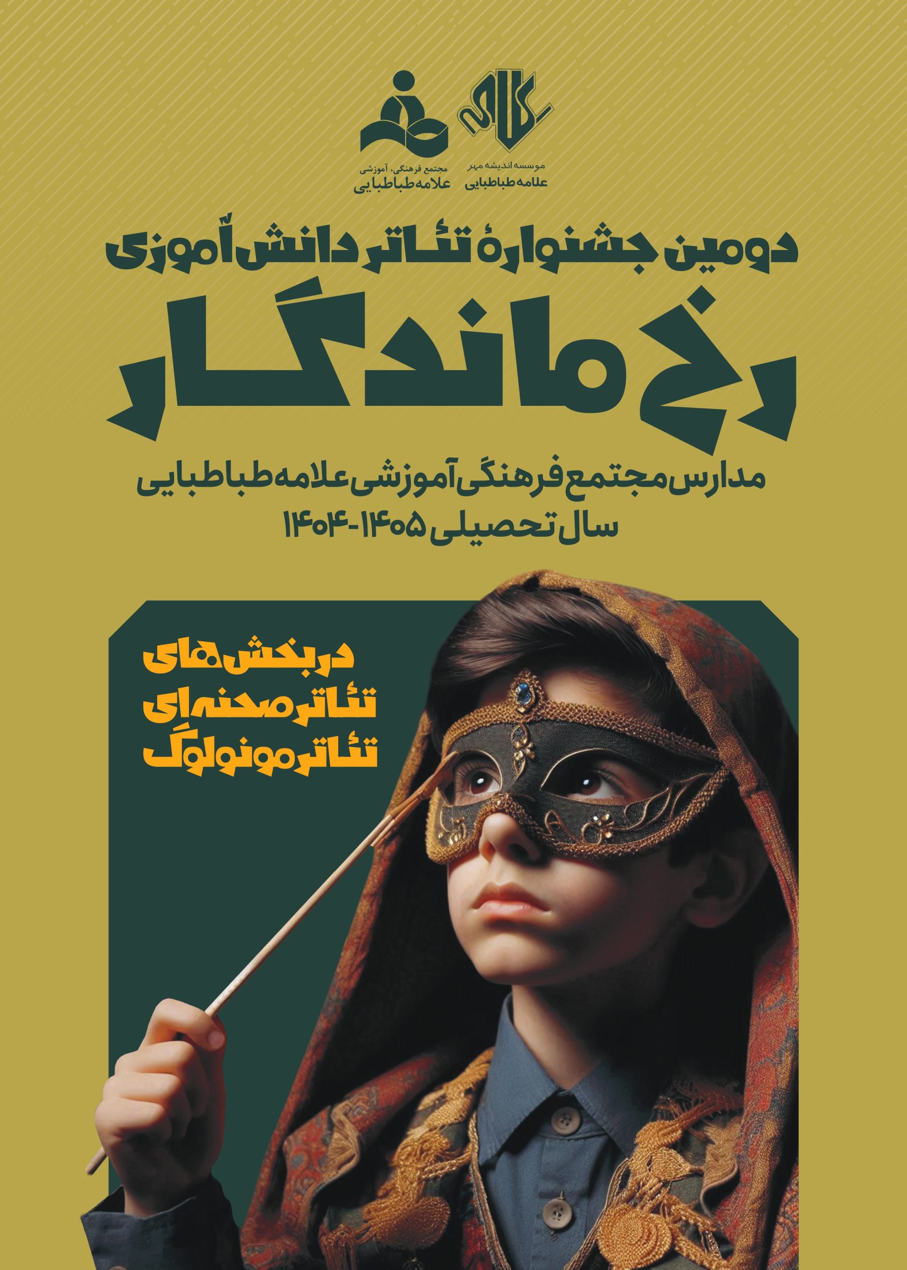 دومین جشنواره تئاتر دانش‌آموزی «رخ ماندگار»، ویژه‌ دانش‌آموزان دبستان‌های مجتمع فرهنگی، آموزشی علامه طباطبایی، پاییز و زمستان ۱۴۰۴ برگزار می‌شود.